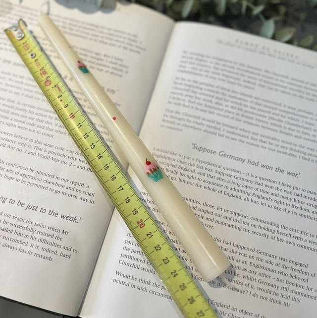 Please note that each candle is hand painted, no two candles will be the same, making every set unique. Products may vary slightly from pictured.