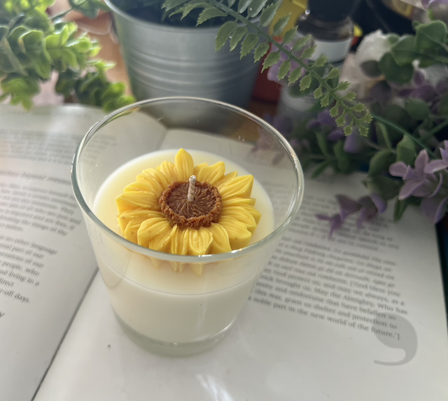 Our Sunflower Candle are 100% made from ecosoy & beeswax.